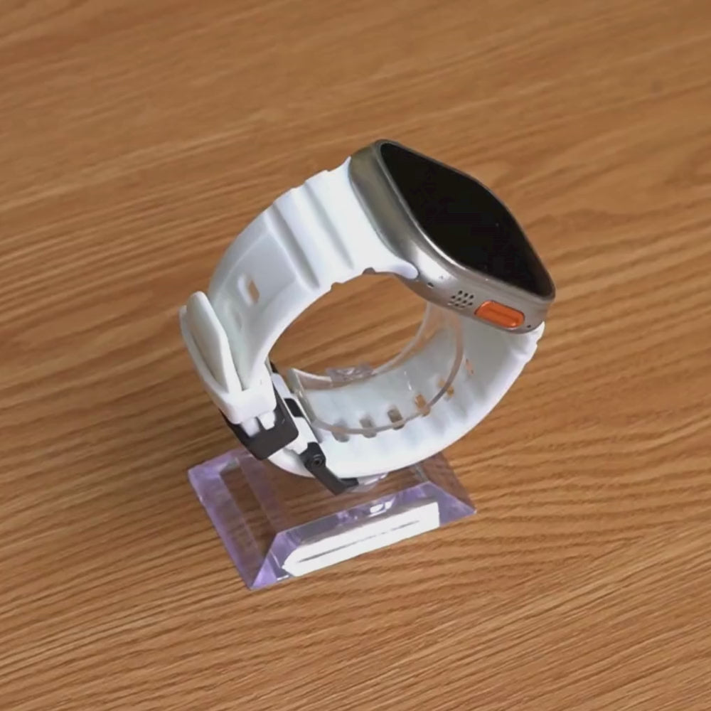 Its ultra-wide profile and rugged one-piece construction are designed specifically to complement the bold proportions of the Apple Watch Ultra, so you can train harder without worrying about comfort or security.